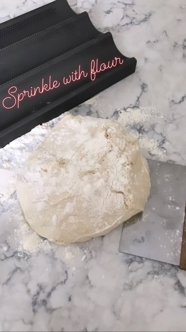 7. Scrape dough onto flour and sprinkle more flour to cover entire surface of dough