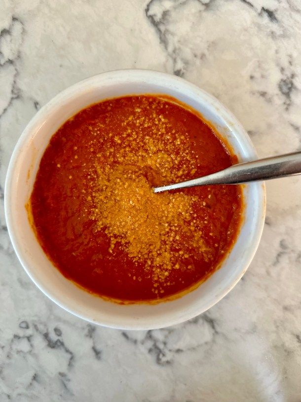 Blend it all really well with a stick blender or food processor. The sauce should be very smooth. If you want a more chunky sauce I’d add some extra chopped roasted peppers at the end after the bulk of the sauce has been puréed