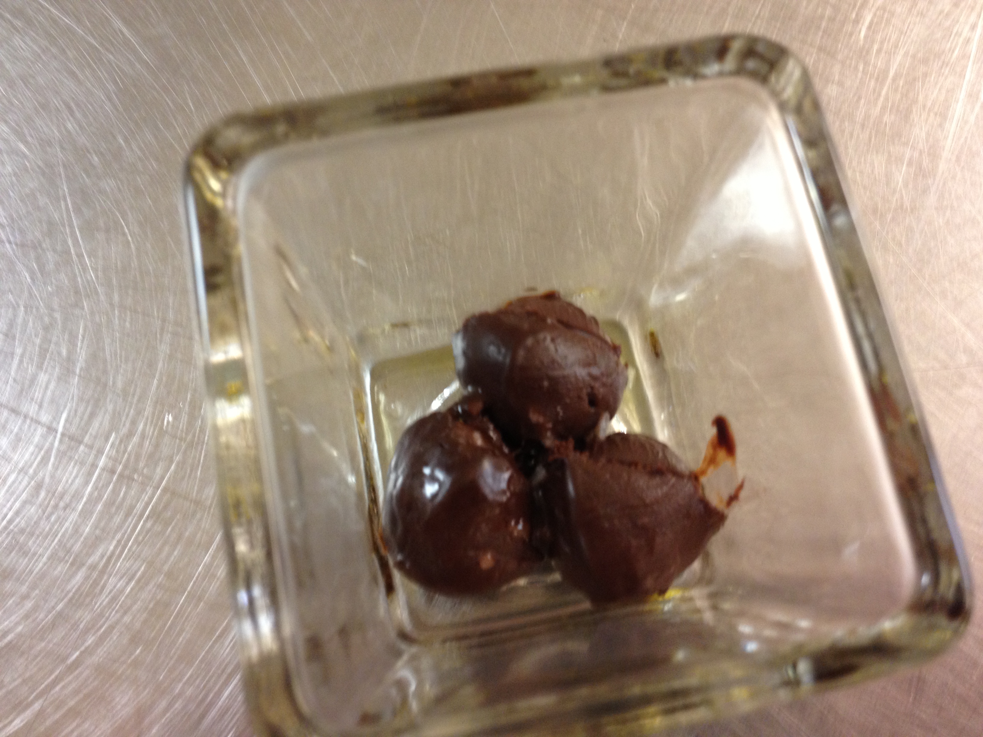 - To serve, using a melon baller, scoop balls of the mousse into small serving containers. (Mary Ann used votive candle holders which were perfect!) Lightly drizzle olive oil around mousse and sprinkle salt on top. If desired, place a very thin bread stick into the mousse, adding another dimension.