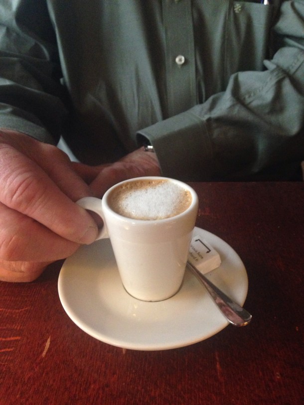 The French style of espresso with just a drop of steamed milk, cafe noisette.