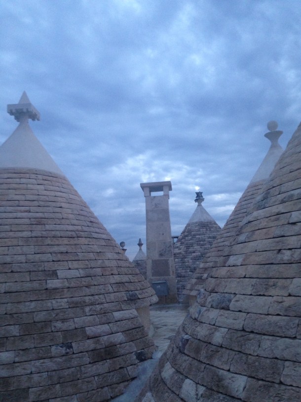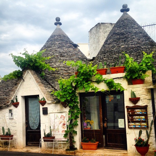 Puglia is known for its charming trulli building structures, traditional dry stone huts with conical roofs were originally storage sheds and barns built in the 15-18th centuries. They were later used as homes and today are remodeled to meet modern needs. Trullo is 1 hut, Trulli is more than 1.