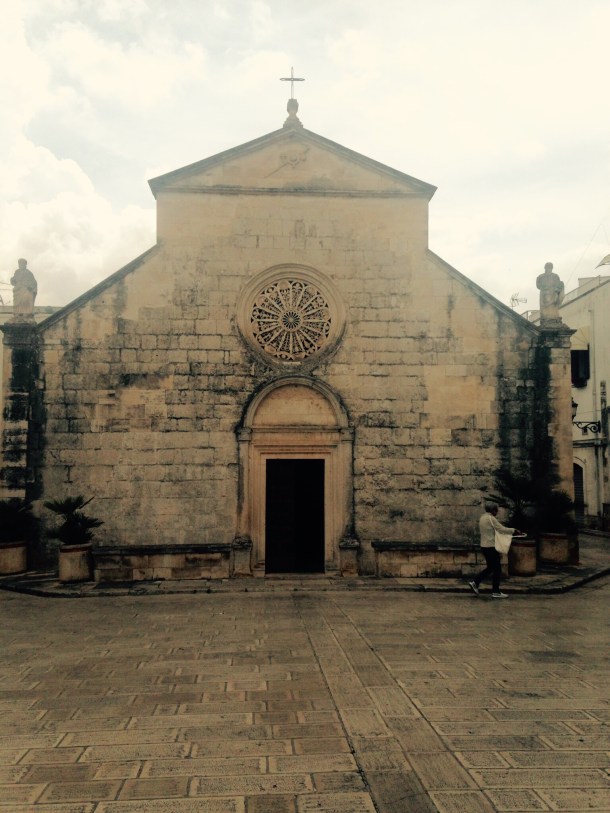 We said good bye to our new friends in Savoca Sicily at the Resort Borgo San Rocco. On to Puglia! First we took a 2 hour drive to the ferry in Messina and then the 1 hour windy ferry trip to Villa San Giovanni in the region of Calabria, Italy. After a 4 hour drive through Calabria and Basilicato in the foot of Italy, we arrived in Puglia, the heel and Achilles’ tendon! We drove through the Puglian towns of Taranto, Martina Francis and Locorotondo, all worth visiting.