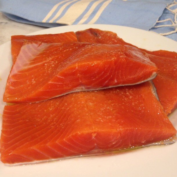 - I used Sockeye Salmon with the skin, and cut a 1 and 1/3 pound filet into 4 pieces Norwegian salmon is also a favorite of mine