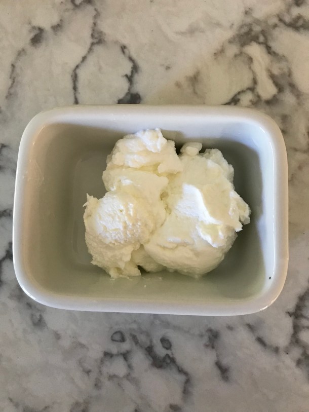 - Scrape the labneh into a small bowl, cover and refrigerate.