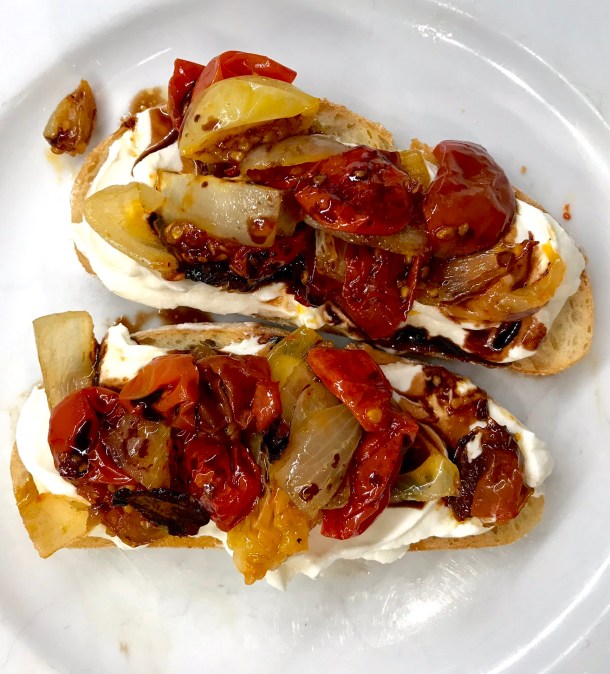 2. Roasted cherry tomatoes, garlic and onion drizzled with balsamic and sea salt or