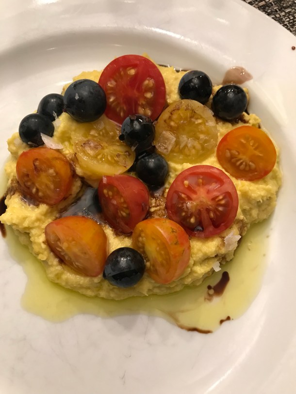 Puréed Corn with Cherry Tomatoes and Concord Grapes