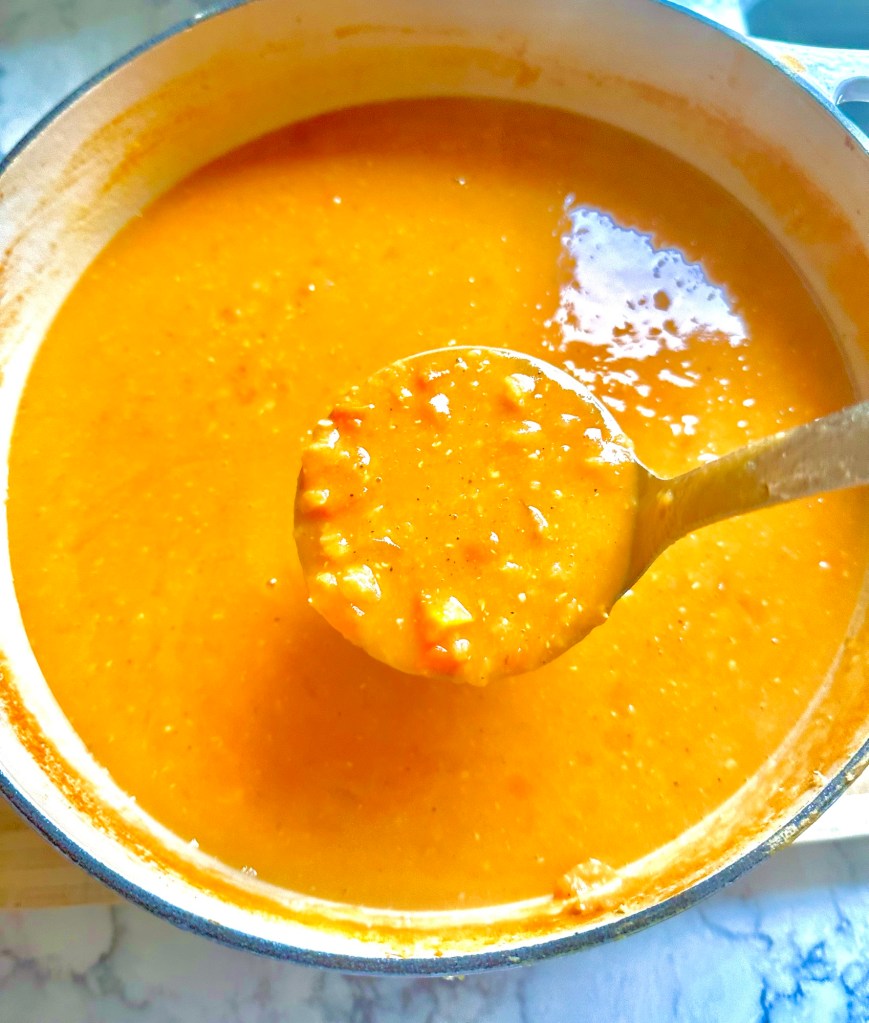 9. Serve soup hot. Sprinkle with cayenne if you like