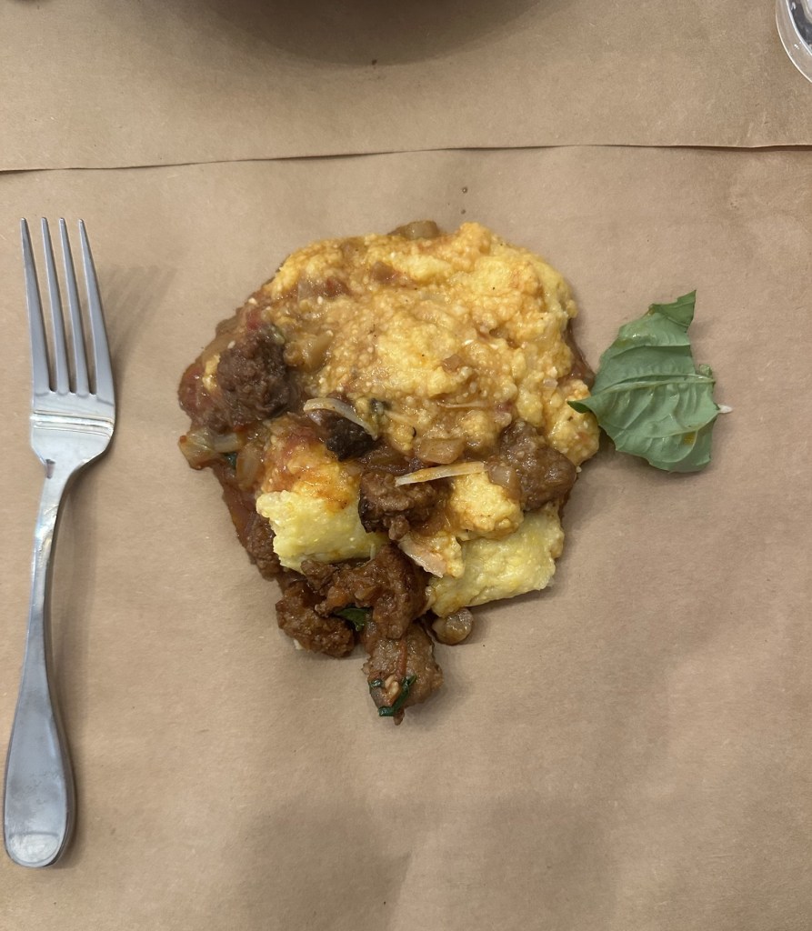 This meal is a thick creamy polenta which can hold the meaty tomato sauce. A jar of tomato sauce is NOT a substitute!