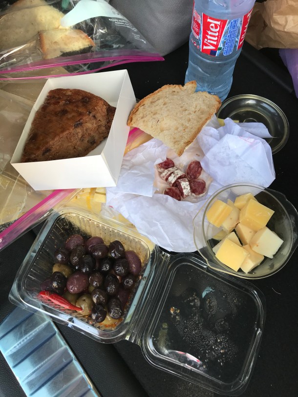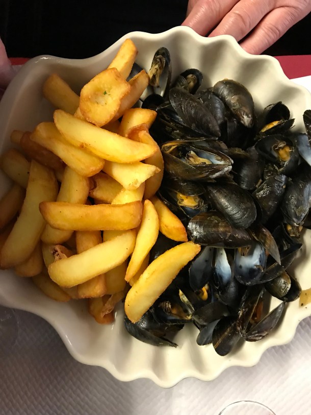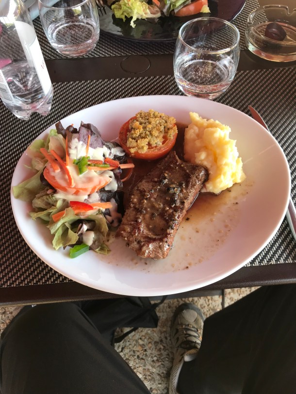Stopped for lunch in a tiny town called Davoye Le Milles. This was a surprise lunch. We expected pizza. The place was packed with men. They looked like workmen from the vineyards or construction plants nearby. After we were seated we learned that they were only serving the lunch of the day which was 3 courses for 13Euros