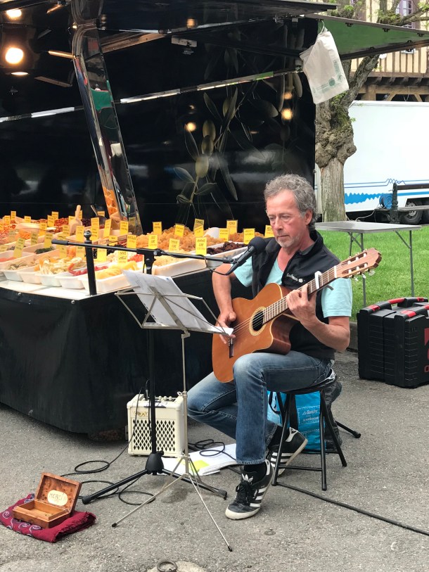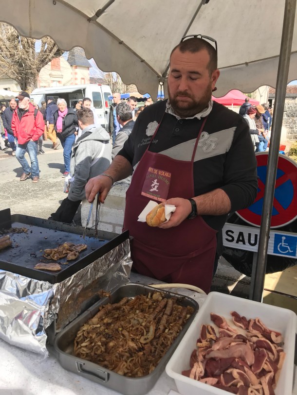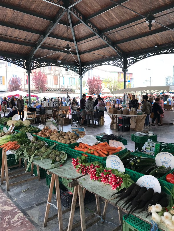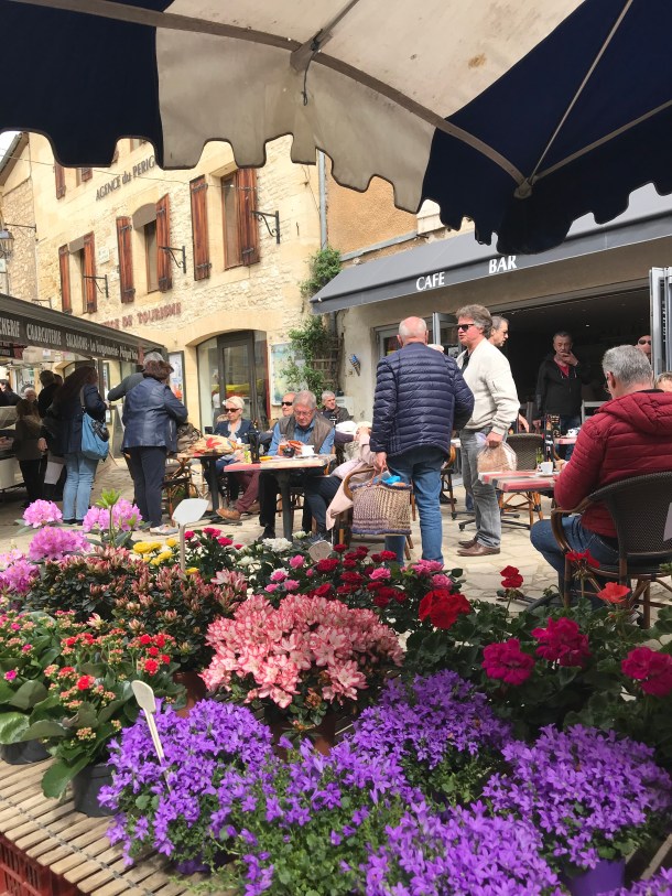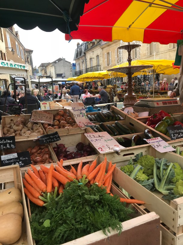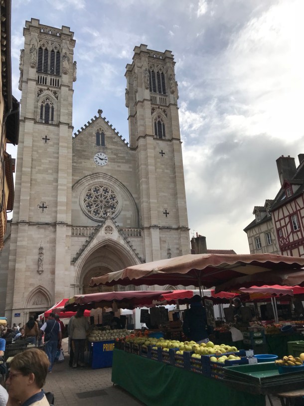 Our first day was Sunday and we headed to the Market in Chalon. The darling town was busy and full of people shopping and relaxing outdoors at the cafes surrounding the square. The rotisserie chickens are popular as are the fresh produce, cheese, olives and fresh meats. These markets are like going to Meijers. The vendors often have trucks and displays outfitted for refrigerated meat and cheese, but fresh produce is the queen of the market or marché!