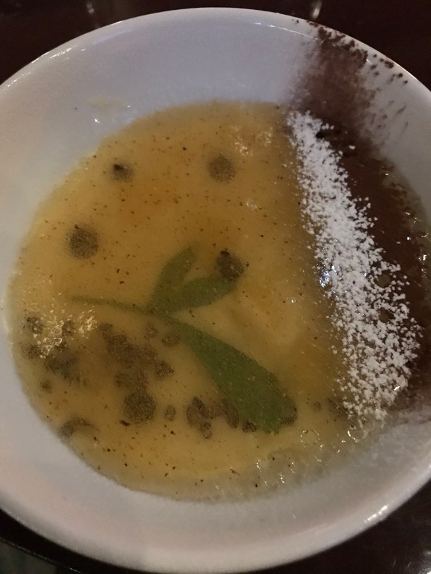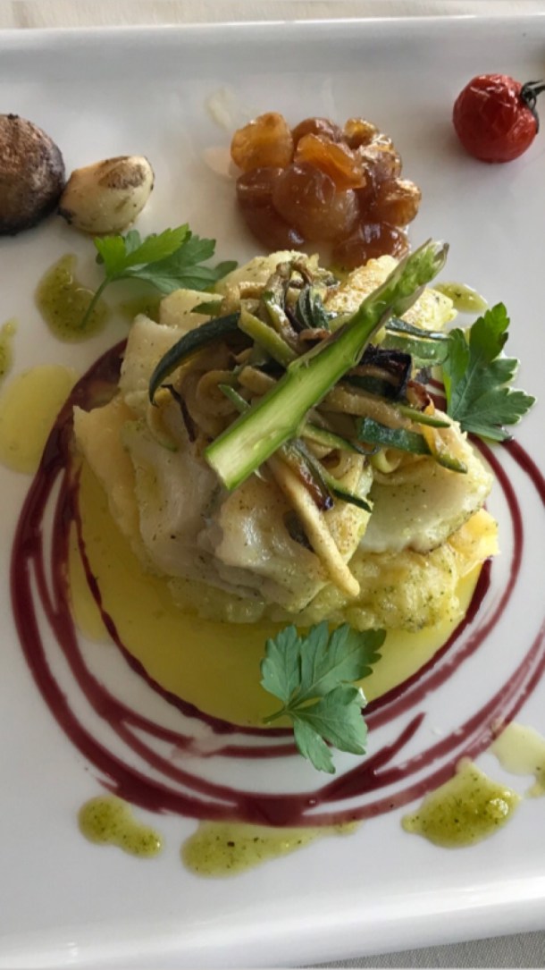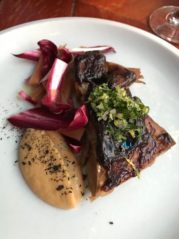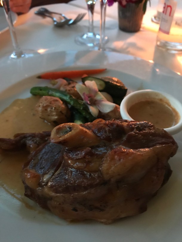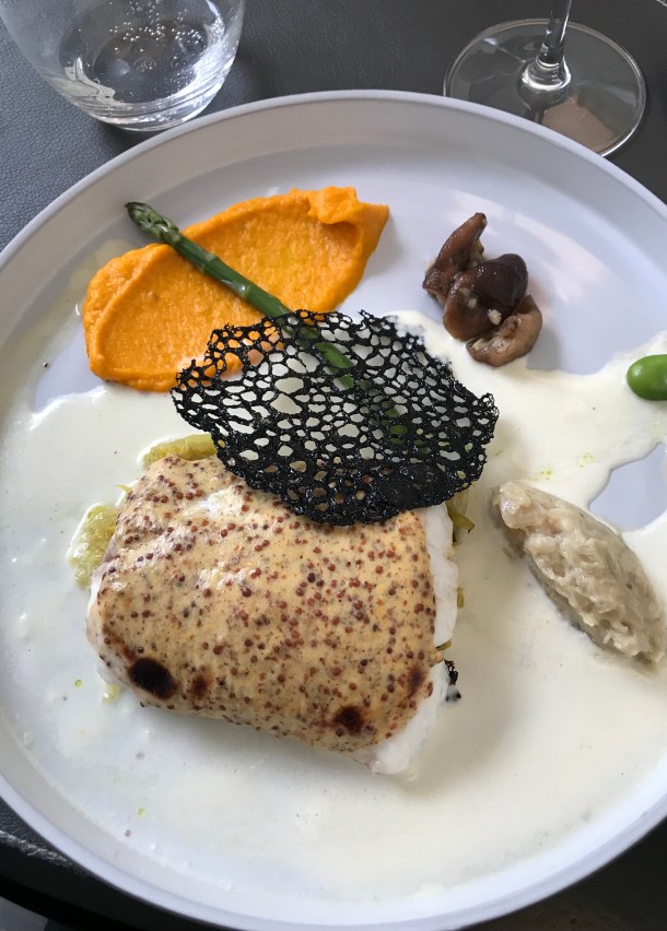 3rd was a whitefish called faro, seared and served with 1 white asparagus and a timbale of eggplant. A remarkable sauce of white foam was the base of this dish! I watched the chef use an aerator to foam up a container of white sauce in the kitchen! Reminds me of a famous chef Fernando Adriá from Barcelona who made foaming food a phenomenon at his restaurant El Bulli.