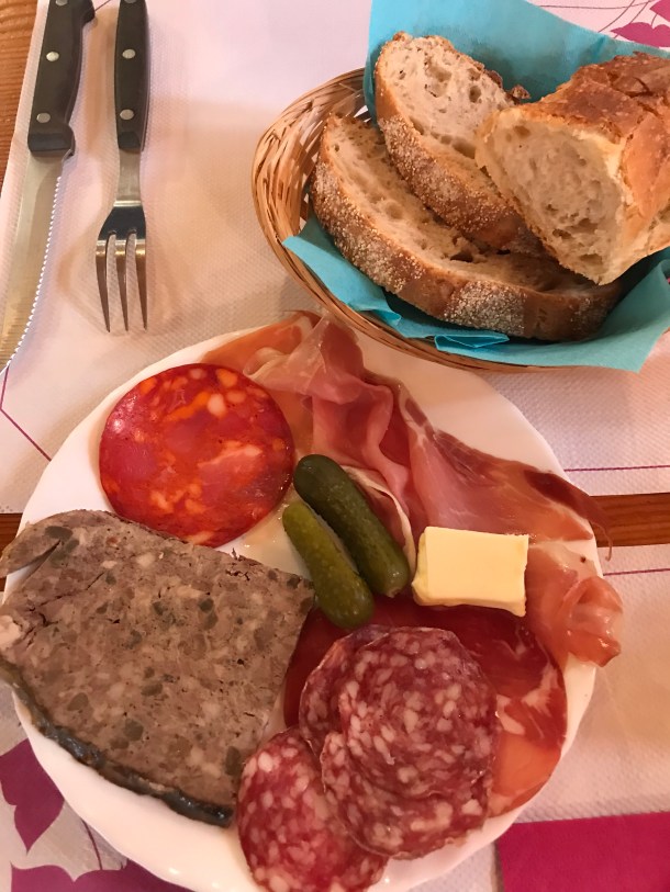 We found a great place for lunch called Hostelleria d’ l’Heloise. It’s a hotel and restaurant. As many restaurants and cafes they offer a lunch of the day. The price was 21 Euros. It was very formal but comfortable. They gave us little portions of extra courses beyond the 3 we expected.