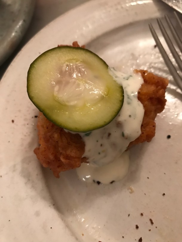 2nd was a small glass of a foamed mix of tomato, cream and celery salt with olive oil.