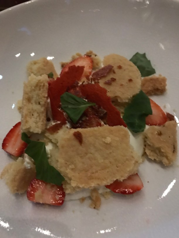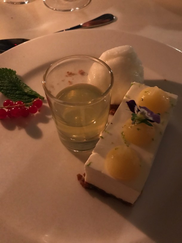 4th was a perfectly round sphere of chocolate served on a bowl at the table. Hot chocolate sauce was poured over it which melted the ball and revealed vanilla ice cream and fresh raspberries! Very unexpected!