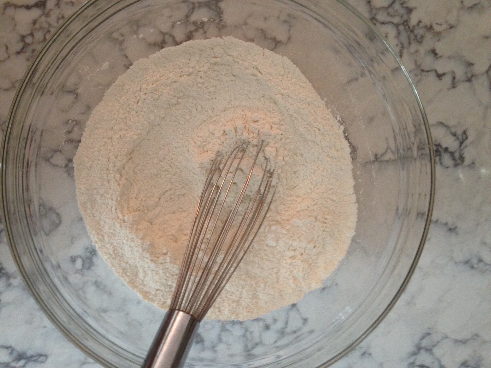 - Whisk together sifted flour, cinnamon, baking powder and salt. Set aside.