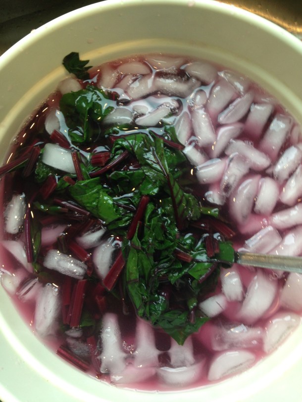 I love to make borsht or beet soup, but I don’t always want to add the beet greens to the soup. And greens still attached to the root vegetable are so very fresh! Beet greens are a great source of calcium which we need to treat and prevent osteoporosis. And they are full of antioxidants!