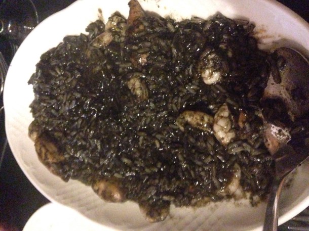 This was my favorite food in Seville. Rice and shrimp in squid ink sauce with squid stuffed with rice. The squid ink has a mild seafood flavor.