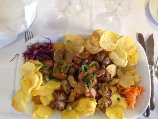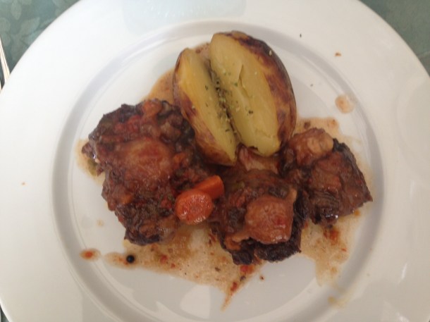 Bulls Tail in a rich red wine sauce over roasted potatoes. So memorable we ordered it twice! Bullfighting is HUGE in Seville! Similar to oxtails available in the States.
