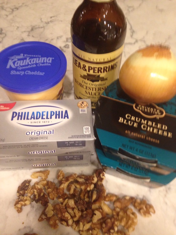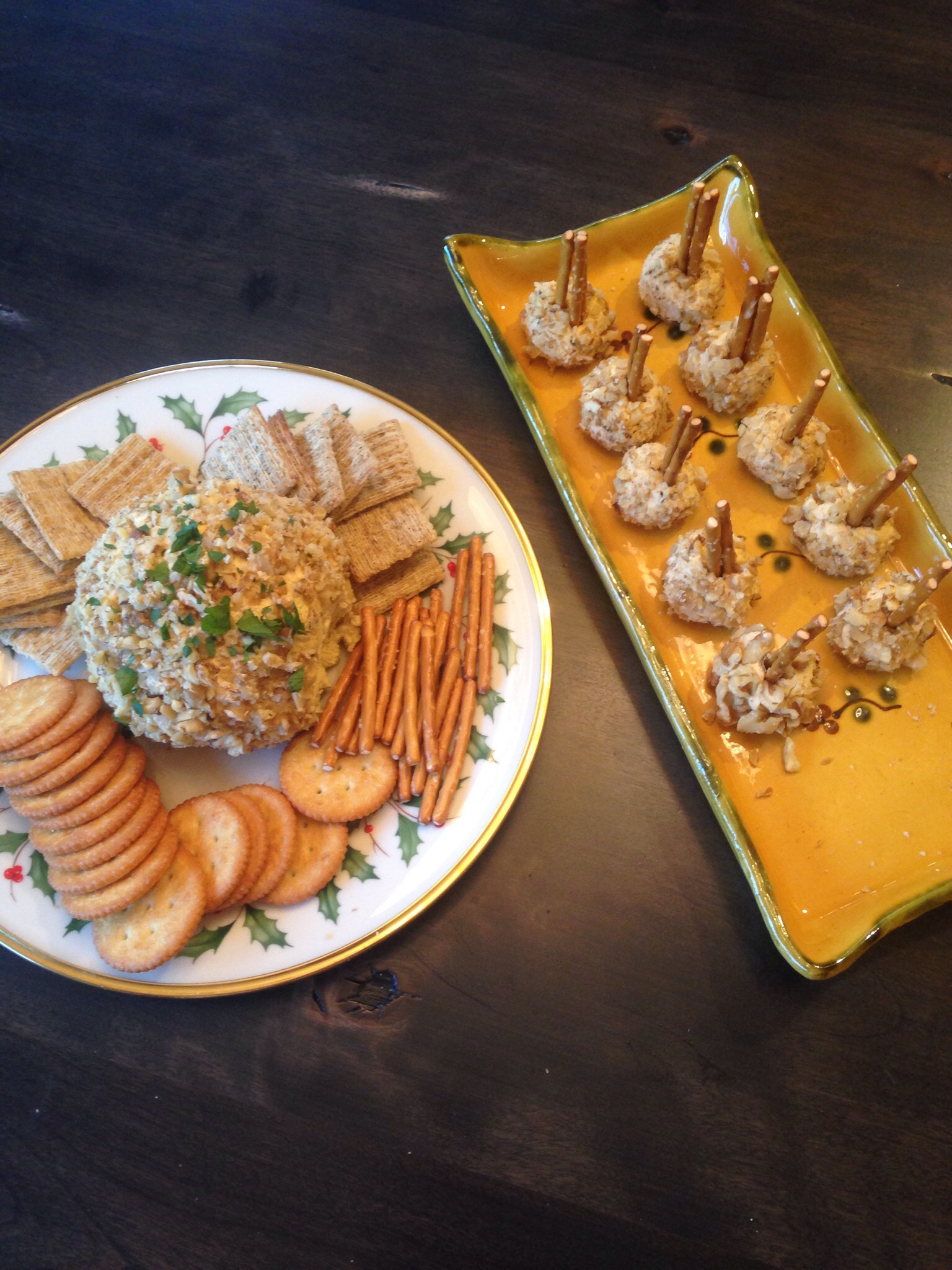 My family loves cheese balls which are usually cheddar, blue and cream cheese rolled in walnuts and spread on crackers.