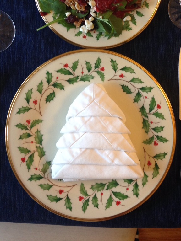 Here is an easy and very effective fun napkin fold for the holidays! Any color napkin works!