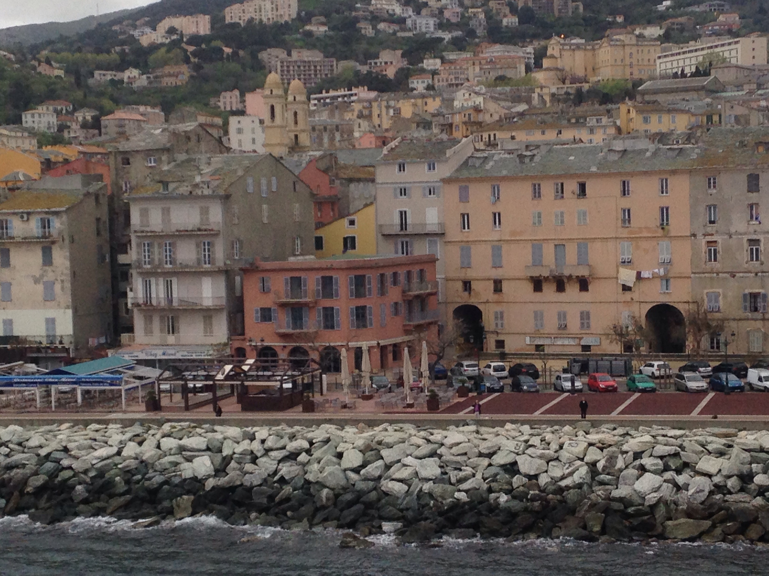 Corsica is a beautiful French island south of Provence in the Mediterranean Sea. We took an overnight ferry/cruise ship there from Marseille. Magnificent mountains and hill towns envelope valleys, bands of goats, olive trees, cork trees, fragrant shrubby plants and vineyards.