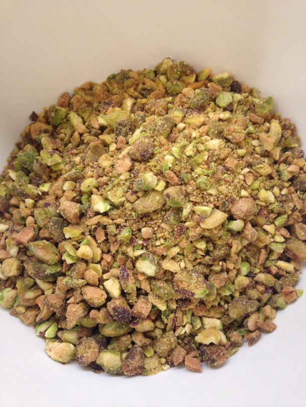 All the ingredients you’ll need. Notice the bag of shelled pistachios!