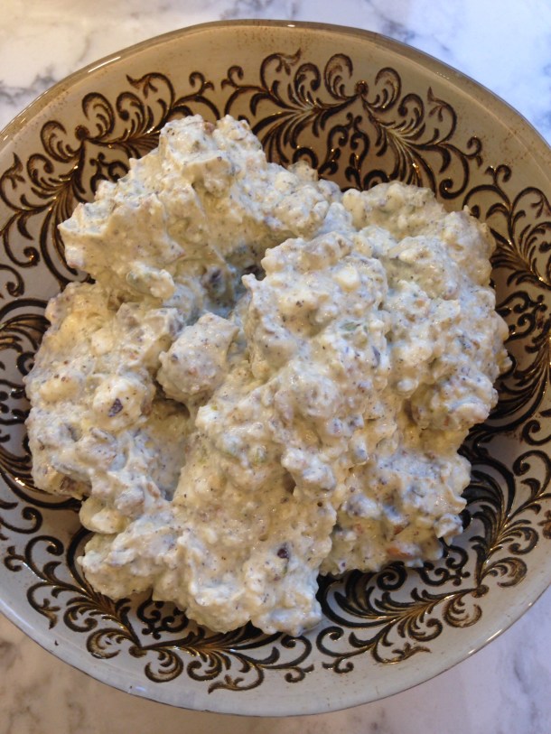You can make this as thin and creamy as you like. A spoonful maintains it’s shape, but it can definitely be spread on a slice of French like baguette. Add more yogurt if you like. Have fun with this new combination of ingredients! Use all 4 teaspoons of the black pepper! It’s the key in this recipe!