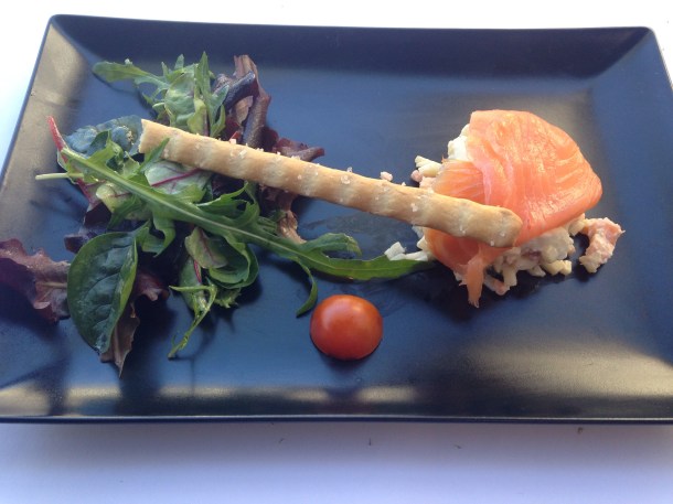 This was a first course. Chopped salmon salad with a slice of salmon on top.