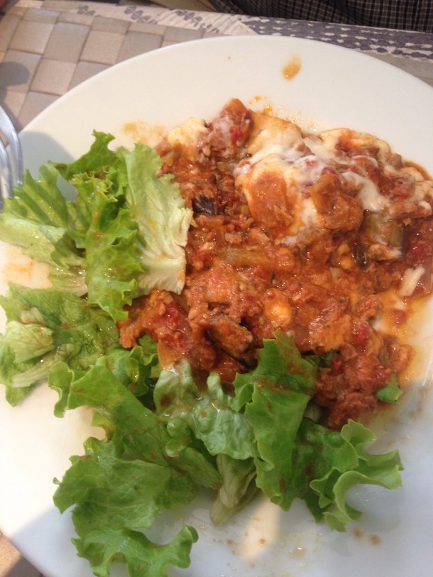 Galette Provençal with chicken, eggplant, mushroom and red pepper.