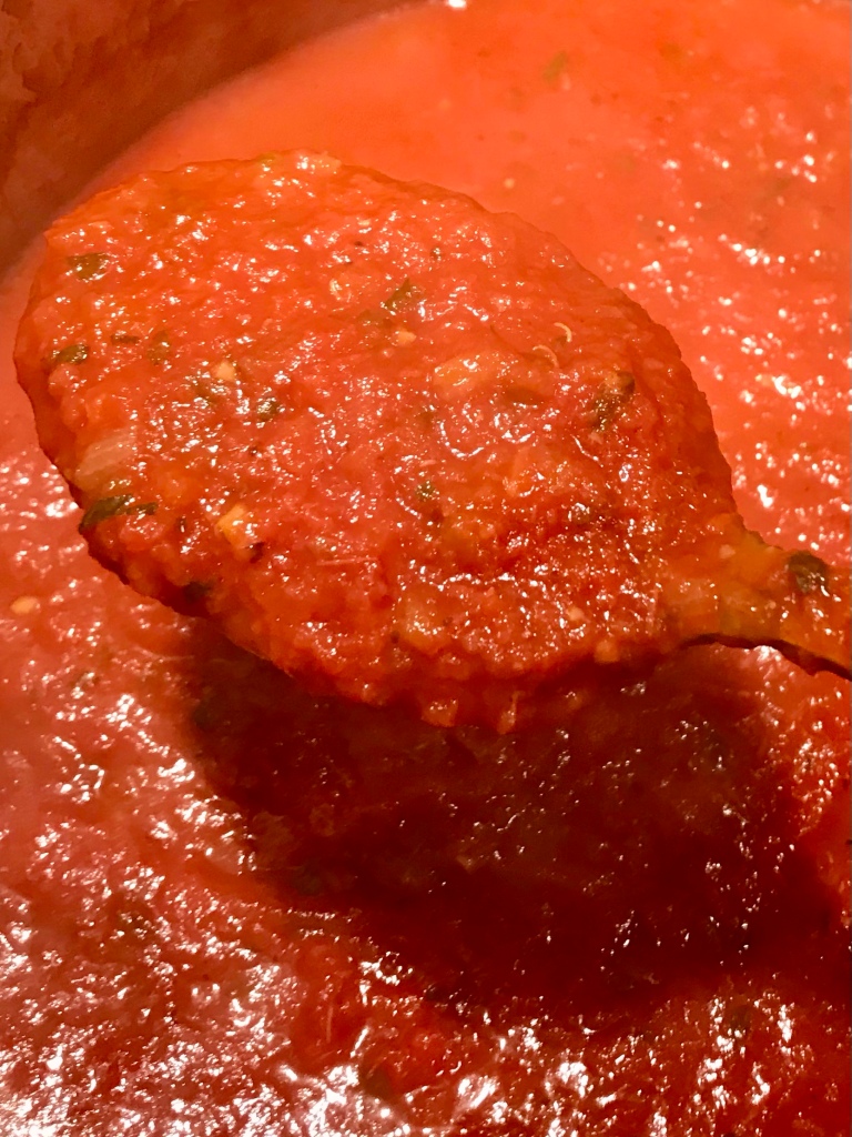 Tomato Sauce After Simmering 4 HoursTomato Sauce at the Beginning of Cooking