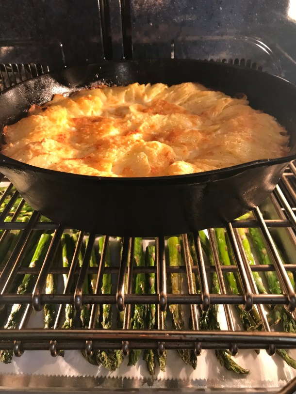 This recipe is from spoonforkbacon.com as Cheesy Garlic Potatoes Gratin