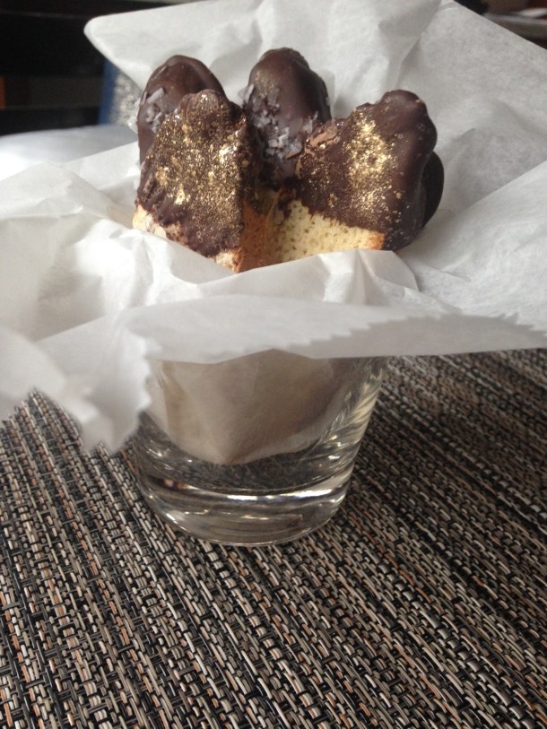12. These are done, but you can take it a step further. Brush one end with dark melted chocolate and then sprinkle with gold dust or black pepper or cayenne pepper or coarse salt!