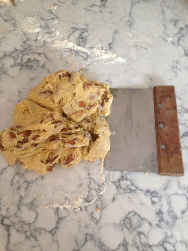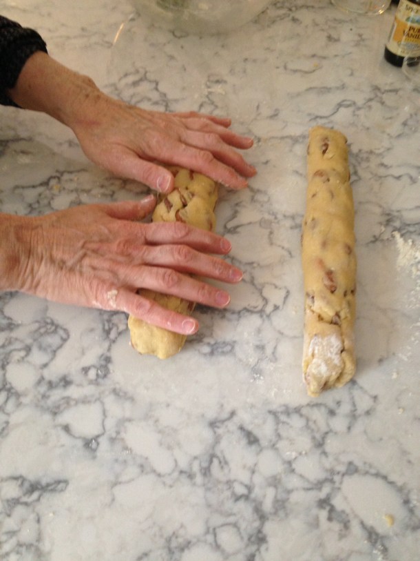 “All Italian cookies are called biscotti, but these are what we think of as classic biscotti. Twice baked cookies, these are first baked in a log shape, then sliced and baked again until they are dry and very crunchy. They are meant to be dunked in coffee, tea, wine, Vin Santo (an Italian dessert wine) or what ever you like.” Nick Malgieri from Baking With Julia.