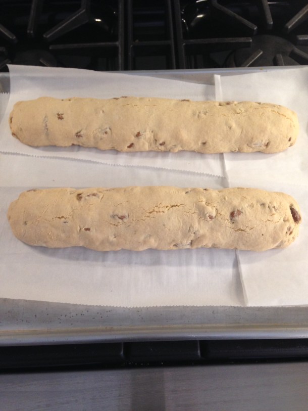 9. Bake at 350 degrees for 30 minutes. Cool on racks until cool, about an hour. Don’t let sit much more than this or they become too hard to slice evenly.