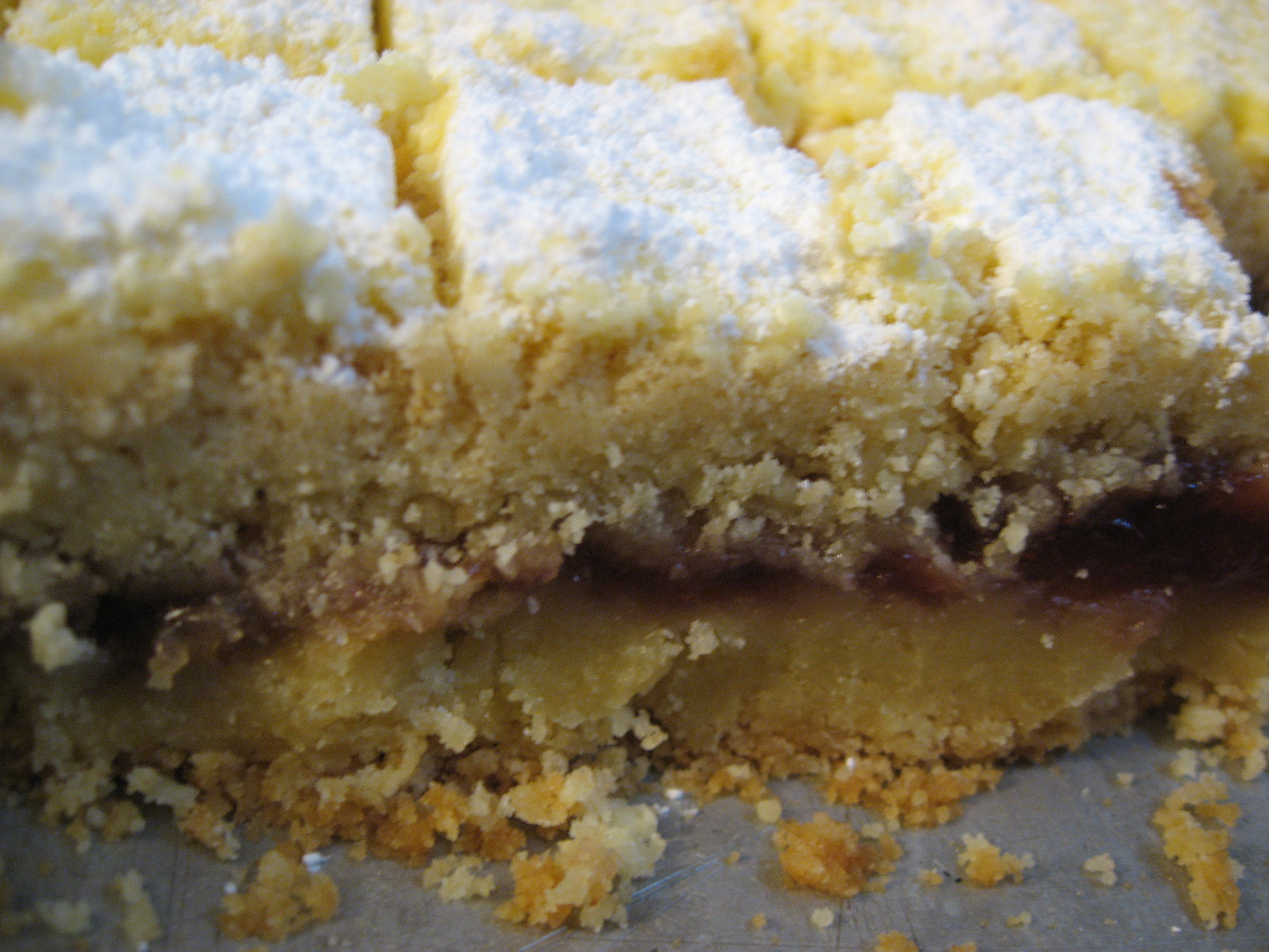 12. Grate the other piece of dough evenly over the jam and pat gently and evenly.