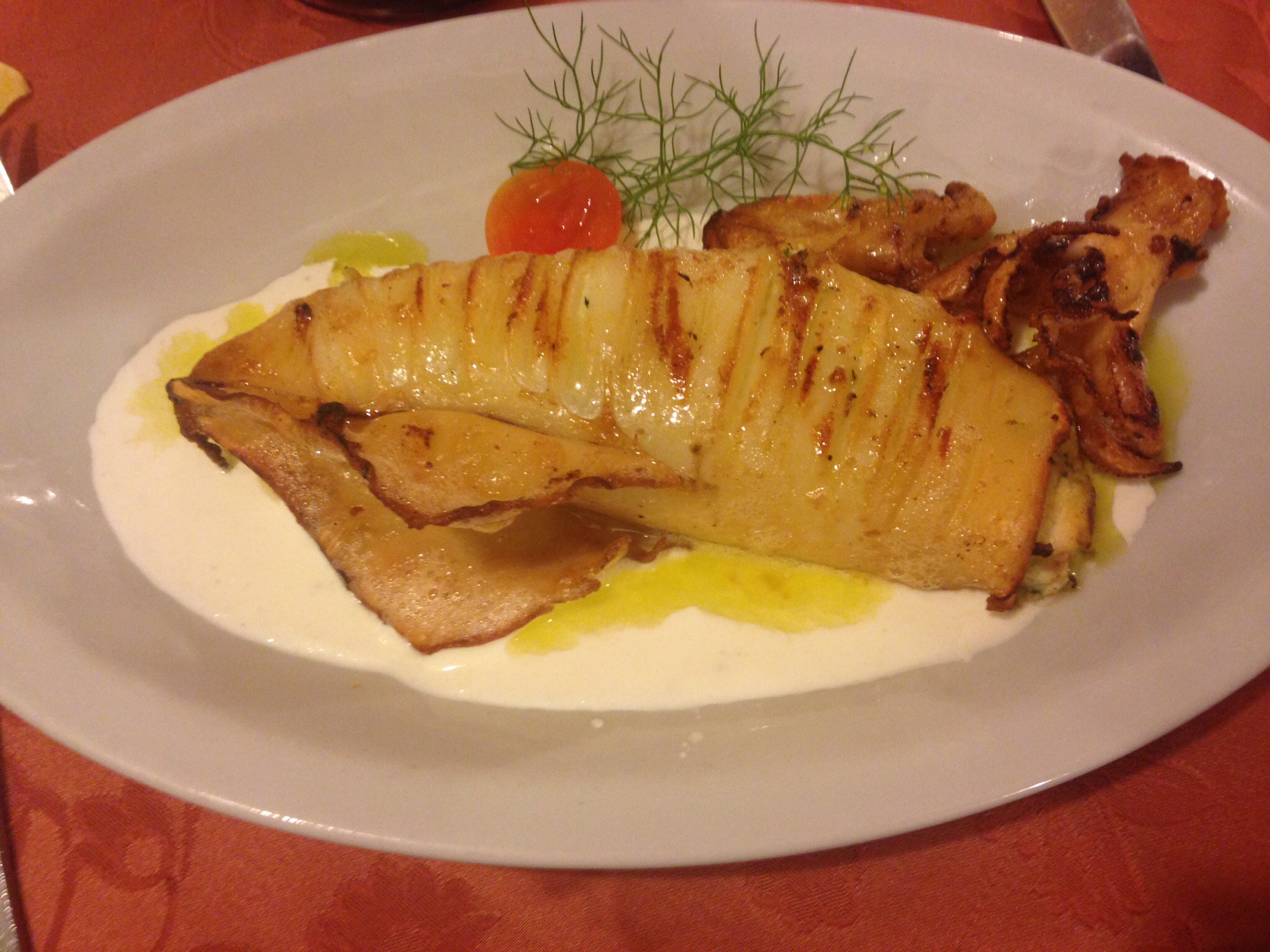 Calamari filled with ricotta in a ricotta cream sauce