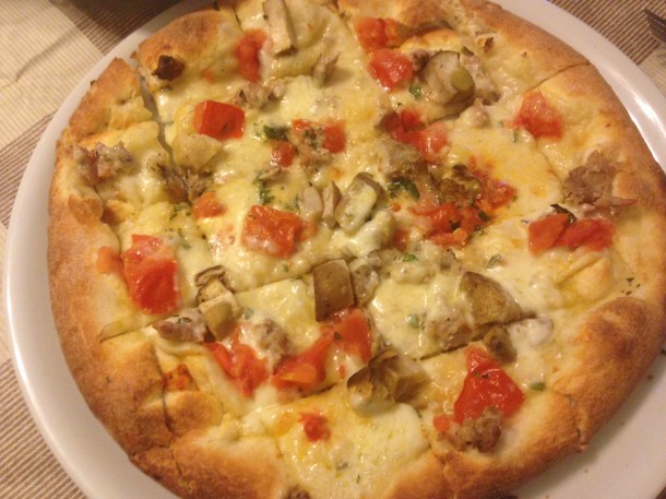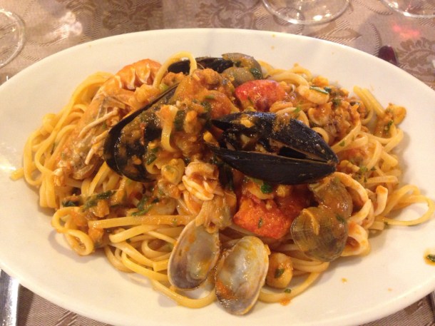 Pizza in Palermo at Pizzeria Italia! With seafood and no cheese! This is Italy and the two are not allowed together!