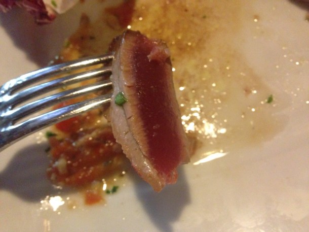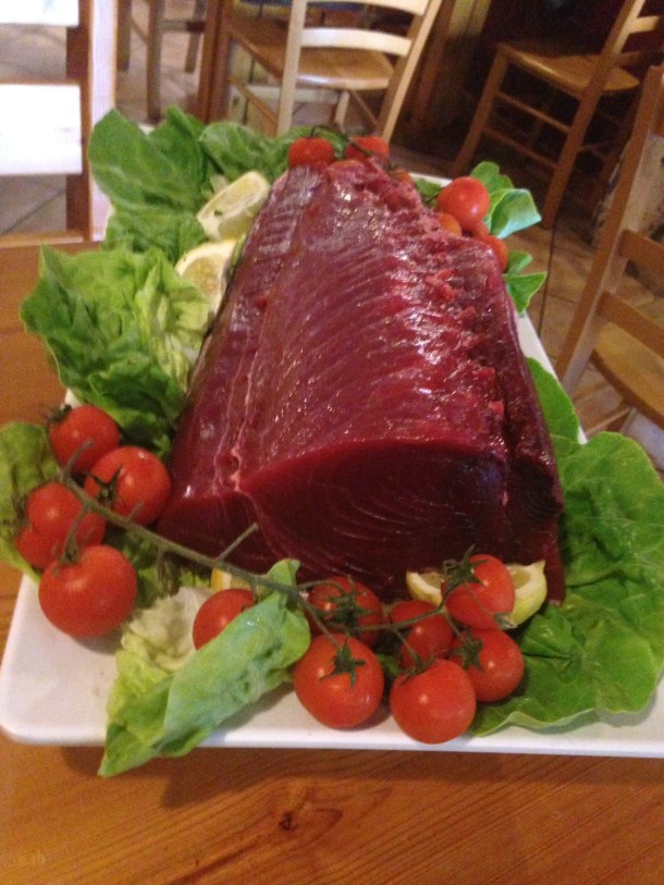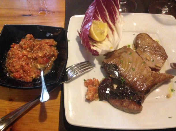 The most fresh fish of the entire trip at Antichi Sapori in Trapani. Here is a red tuna seared and served with a salsa of tomato, almond, basil and garlic.