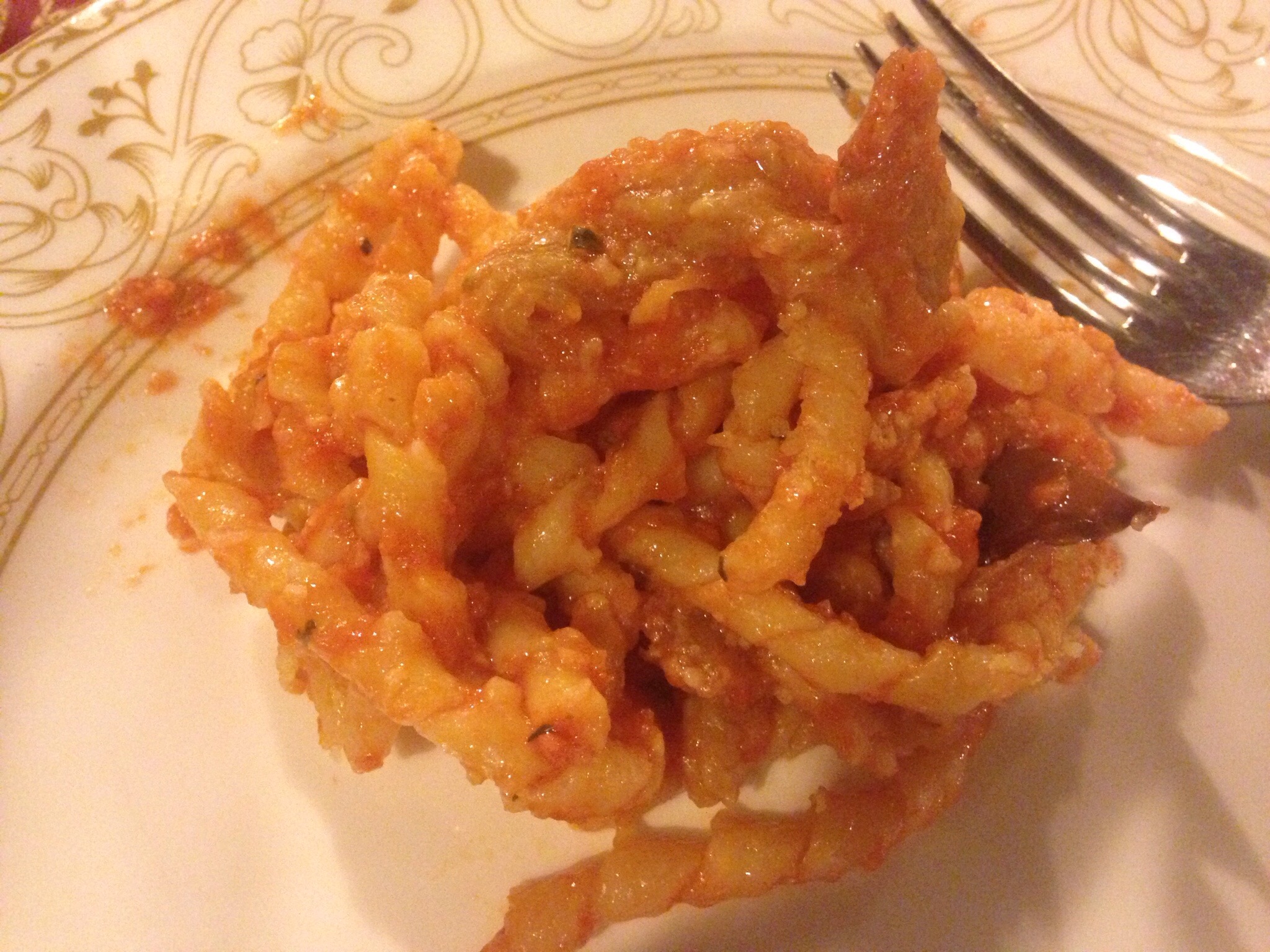 Busiati Trapanesi, the local pasta here with their local Erice Pesto sauce: tomato, eggplant, almonds and garlic.
