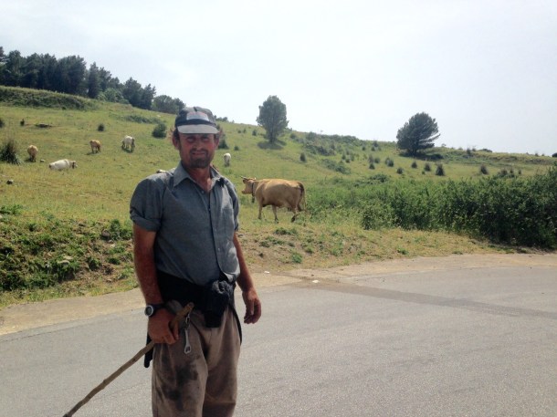 Ricotta is made with sheeps milk and there are bands of sheep grazing all over Sicily. The cows roam also, here with a farmer, though not always.