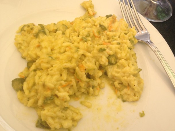 One of the most delicious foods of the trip her is a saffron risotto with teeny zucchini and zucchini flowers and truffle oil. In Palermo at Spinnacato.