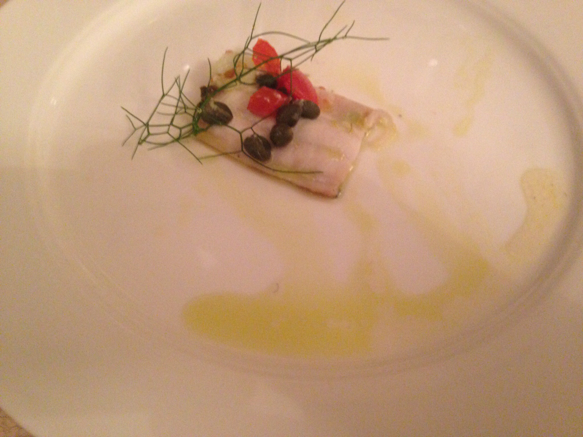 Fish with capers, tomato and fennel frond