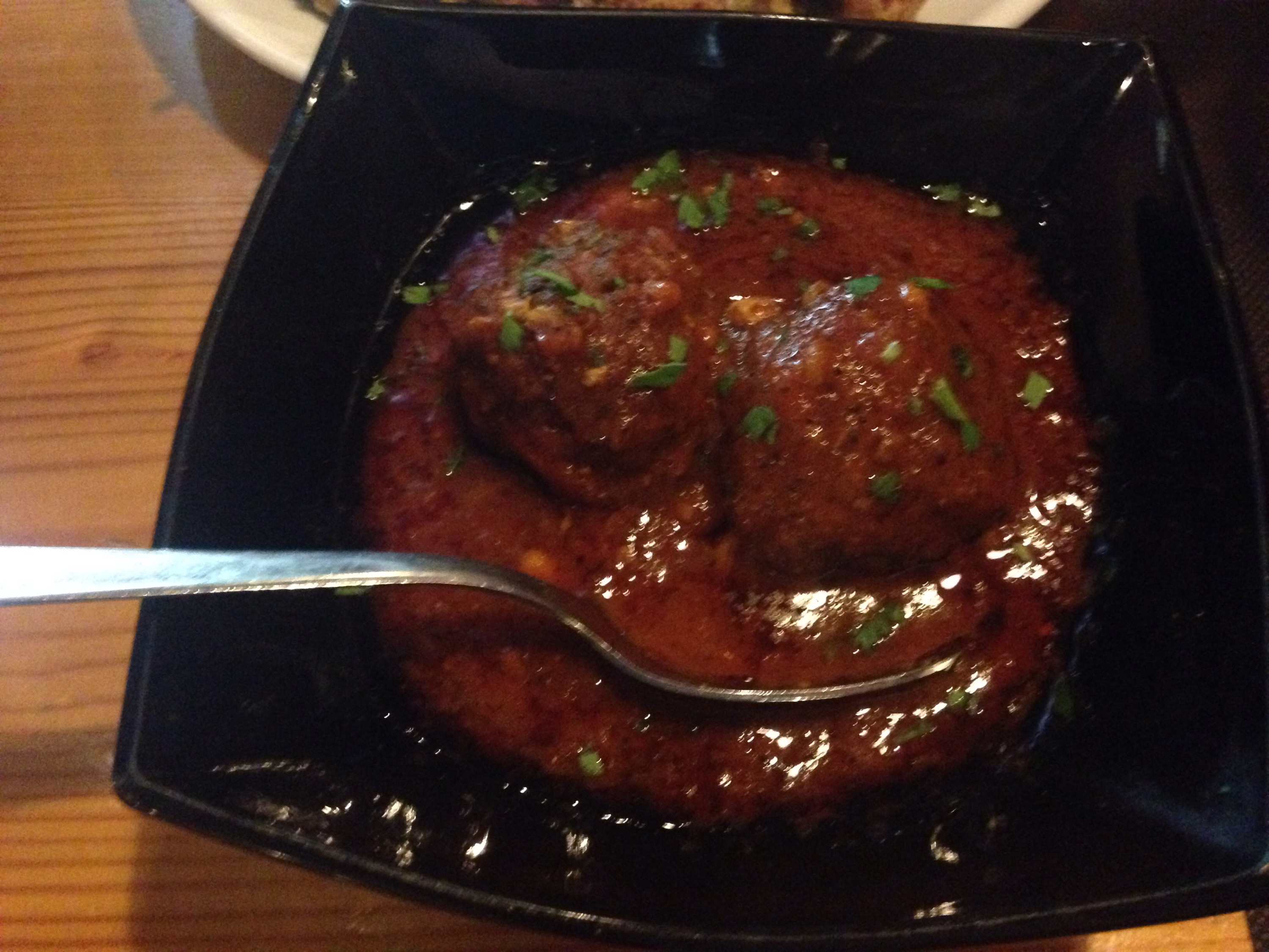 Sardine Balls, a meatball with sardines in a tomato sauce. Some have more sardine flavor than others.